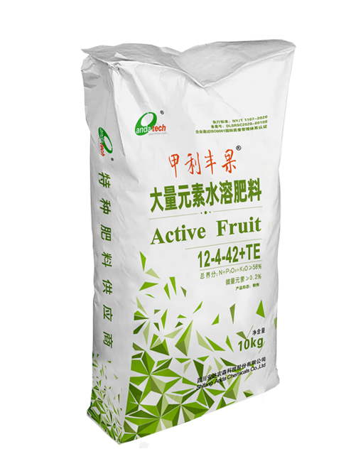 12-4-42+TE 包装规格 10kg/袋 1、出口产品,精选高纯度原料精制而成,全溶无渣,溶解迅速,吸收效率高,使用效果明显,品质保障; 2、针对缺钾引起的叶缘焦黄坏死、植株纤弱、转色不齐等症状;特别适合茄果、瓜豆、果树等经济作物,是喜钾作物或作物缺钾时首选用肥; 3、添加螯合态锰、锌、铁,以及硼等多种微量元素,氧化钾的含量达到42%,能促进果实的膨大及着色,促使果实色泽鲜艳,提高单果重量及含糖量,提升植株营养生长和生殖生长空间。