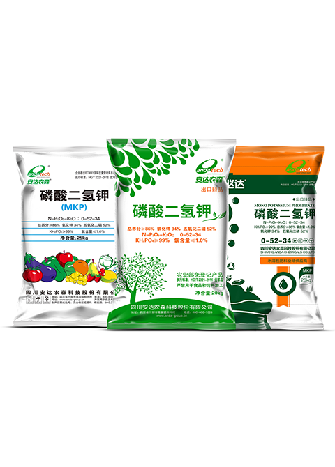 产品含量:0-52-34 技术指标:主含量≥99% pH:4.4-4.8 包装规格 10kg/袋、20kg/袋、25kg/袋 产品介绍:本品易溶于水、纯度高、吸收好、使用安全,能显提高作物的光合作用,有利于果实膨大,增加果品甜度。