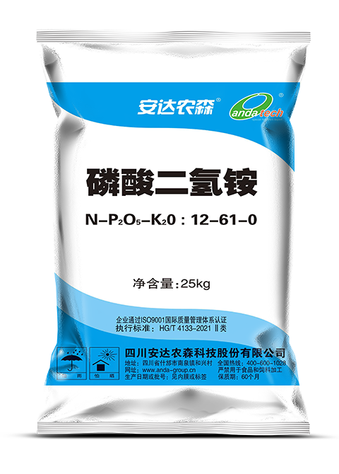 产品含量:12-61-0 技术指标:主含量≥99% pH:4.4-4.8 包装规格 25kg/袋 产品介绍:本品易溶于水,具有纯度高、吸收好、见效快、使用安全、促根提产等特点。