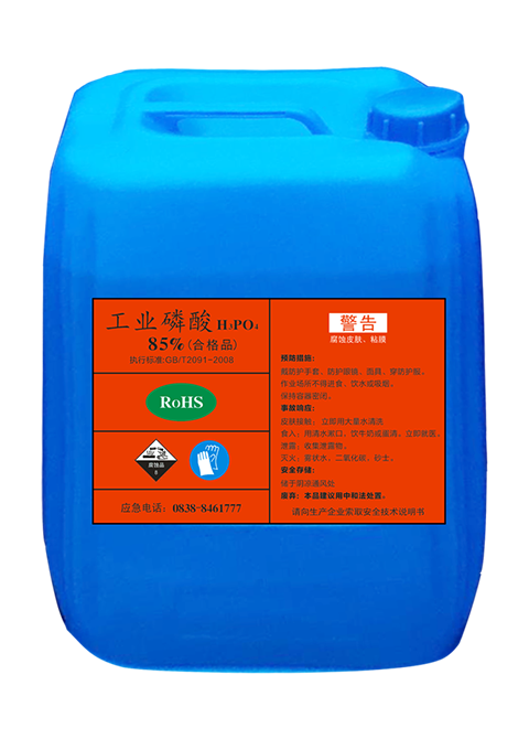 主含量≥75%、85% 包装规格:35公斤/桶,1600公斤/桶 35kg/drums,1600kg/IBC Tank 产品介绍: 1、工业用途:主要用于磷酸盐、肥料、铝材抛光剂,钢铁防锈剂,磷化剂,金属清洗剂,在染料及中间体生产中用作干燥剂,乳胶凝固剂等。 2、食品用途:食品级磷酸可当作酸性饮料的酸味剂。