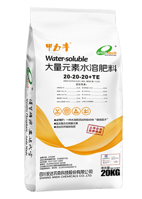 20-20-20+TE; 20-12-20+TE; 包装规格 20kg/袋 1、不同生育期搭配的增效因子(ATBT)不同,对刺激作物生长和营养的吸收达到最合理最大化的功效; 2、特别添加了有利于作物吸收的天然增效物质; 3、具有“保水”、“保肥”的功效; 4、本品采用出口级原料,结合行业领先生产工艺,快速水溶易吸收; 5、营养搭配科学,并富含多种微量元素。