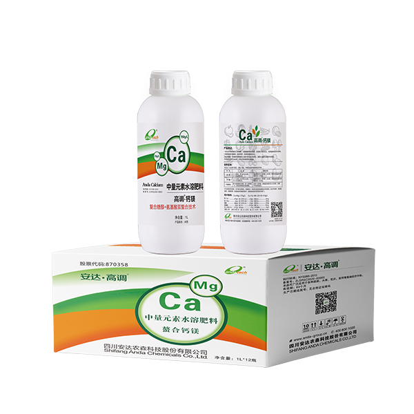 包装规格:1L*12瓶/件产品介绍:1、富含多种氨基酸及山梨糖醇、甘露糖醇等复合糖醇,钙镁离子螯合充分,提高植物吸收利用率;2、根部施用不易被固定,移动性好,有效促进根系生长,预防裂果、黄叶等现象;3、复合糖醇、氨基酸可有效螯合土壤中活性较低的养分,提高土壤养分和肥料利用率;