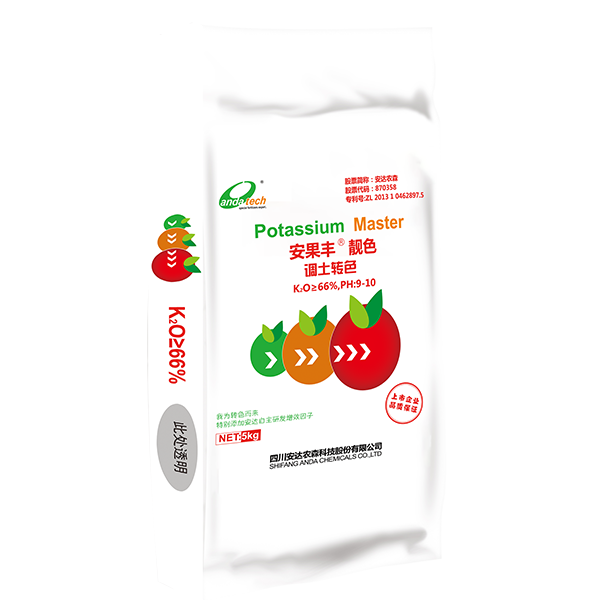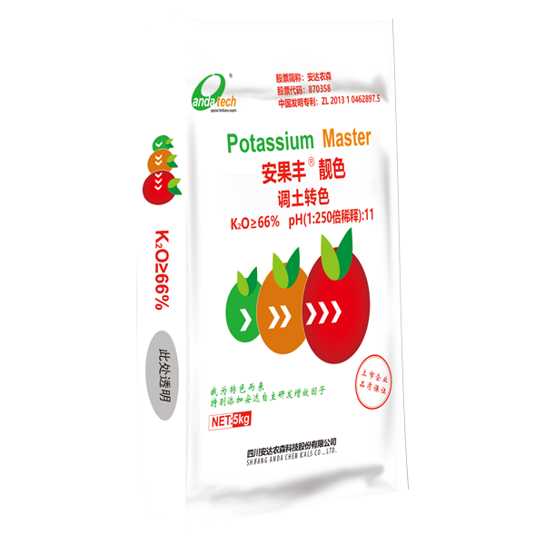 产品介绍:本品氧化钾含量66%,对缺钾症状有显著改善,特别添加促进转色专用助剂,对于果实转色有明显提升,产品呈碱性,能调理酸性土壤,在柑橘区控夏梢时可代替硫酸钾或者复配使用。