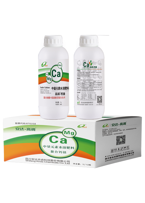 包装规格:1L*12瓶/件产品介绍:1、富含多种氨基酸及山梨糖醇、甘露糖醇等复合糖醇,钙镁离子螯合充分,提高植物吸收利用率;2、根部施用不易被固定,移动性好,有效促进根系生长,预防裂果、黄叶等现象;3、复合糖醇、氨基酸可有效螯合土壤中活性较低的养分,提高土壤养分和肥料利用率;